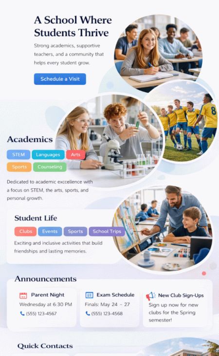 エディタは、選択したレイアウトに正確に対応したさまざまなページセクションテンプレートを提供します。統合されたAIがテキストの生成と最適化を支援します。